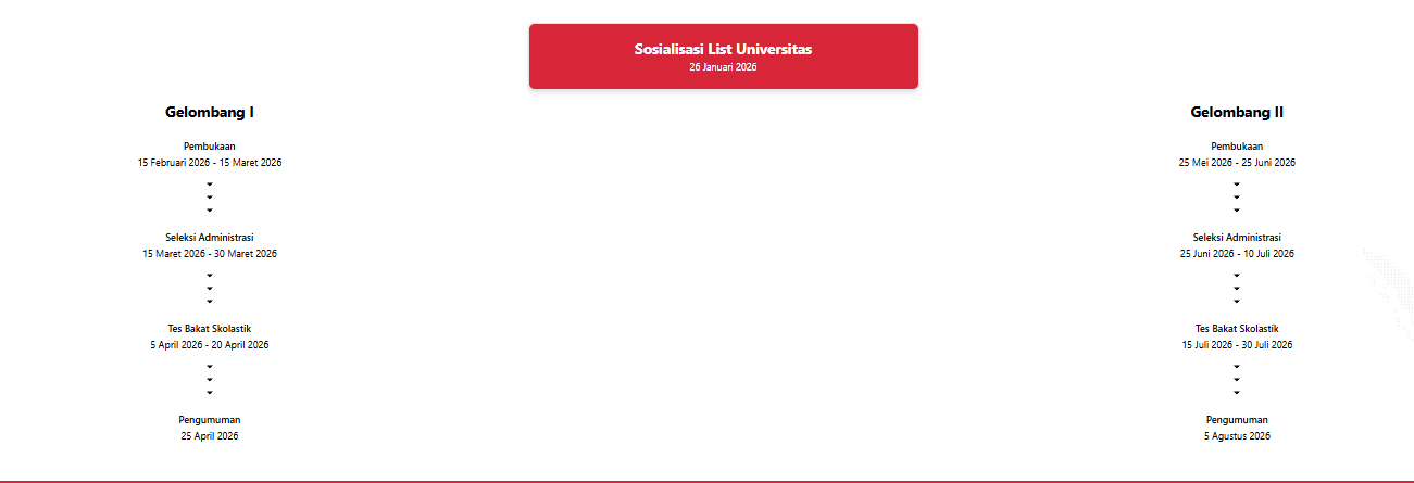 Setelah mengetahui persyaratan, langkah selanjutnya mengetahui jadwal seleksi beasiswa yang ada. Proses seleksi dibagi menjadi dua gelombang, dimana nantinya para pelamar dapat melihat masing-masing gelombang yang ada. Adapun jadwal seleksi beasiswa garuda sebagai berikut :