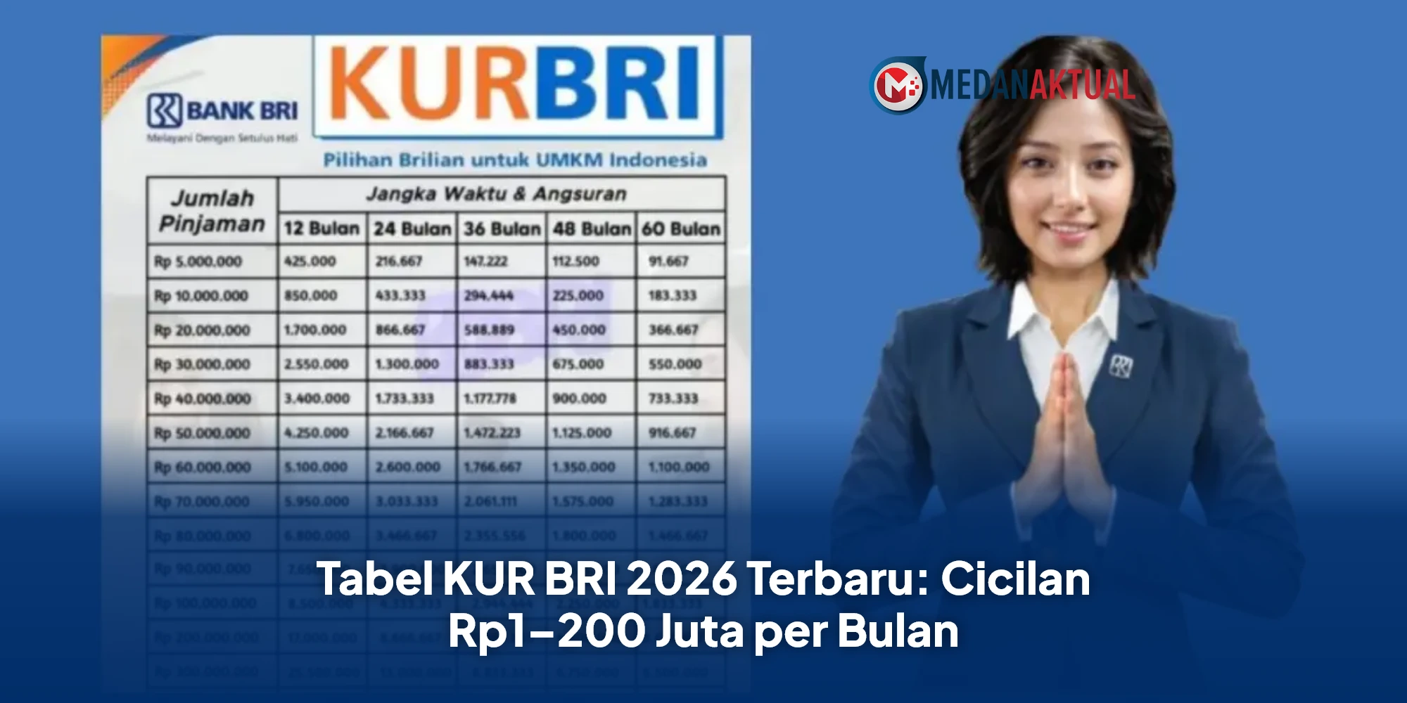 Tabel Angsuran KUR BRI 2026 Rp1–Rp200 Juta
